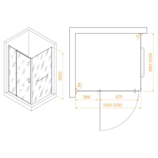 Душевой уголок RGW PA-078-1B (RGW PA-008B + Z-060-2B) 3508078110-14 110x100см чёрный