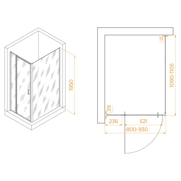 Душевой уголок RGW PA-078 (RGW PA-008 + Z-050-2) 350807881-11 80x110см хром