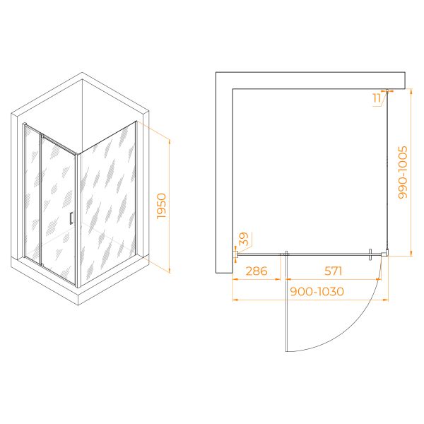 Душевой уголок RGW PA-078 (RGW PA-008 + Z-050-2) 350807890-11 90x100см хром