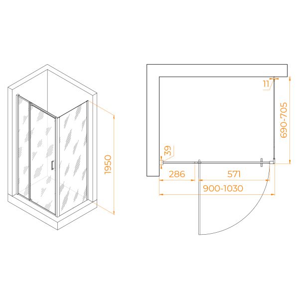 Душевой уголок RGW PA-078 (RGW PA-008 + Z-050-2) 350807897-11 90x70см хром