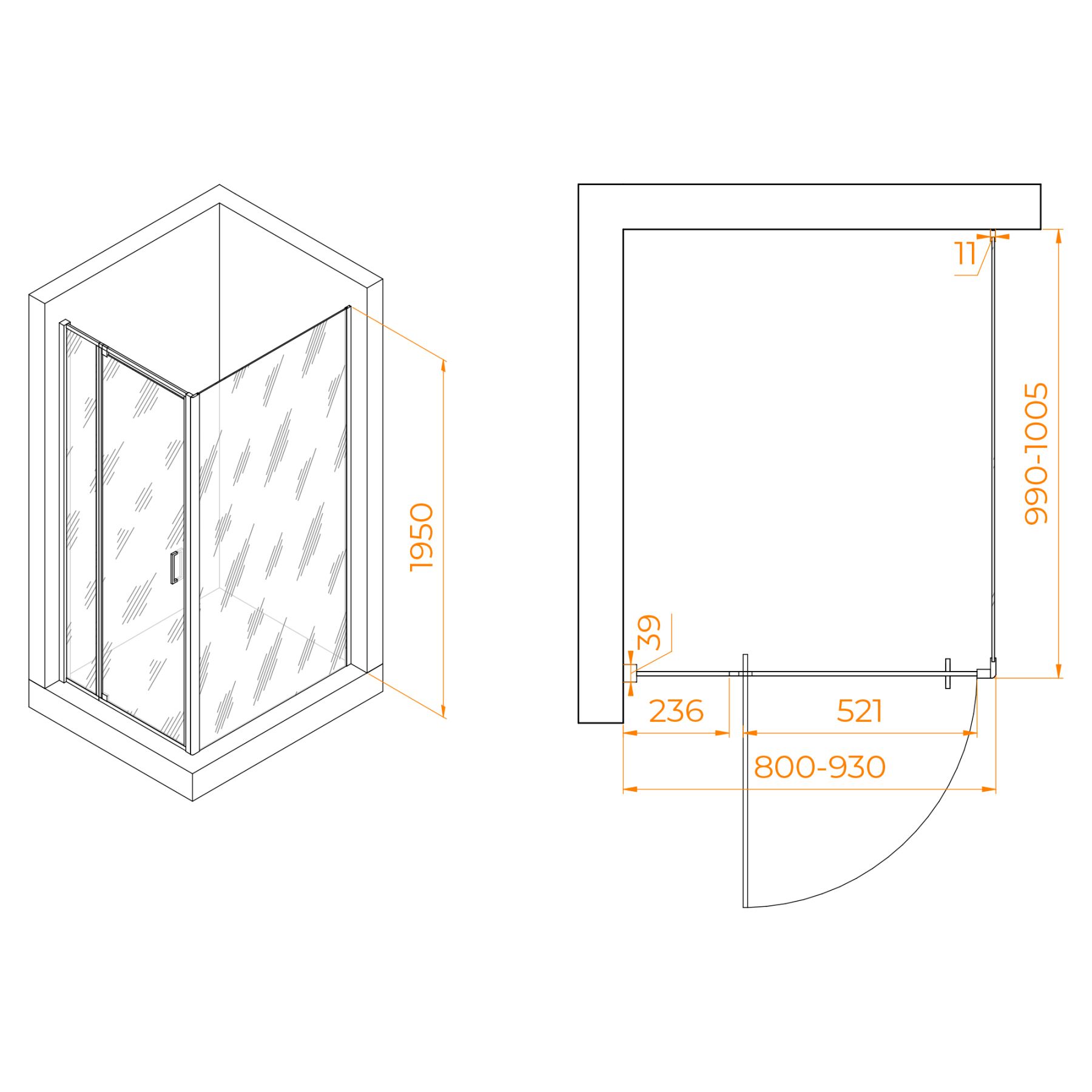 Душевой уголок RGW PA-078B (RGW PA-008B + Z-050-2B) 350807880-14 80x100см чёрный