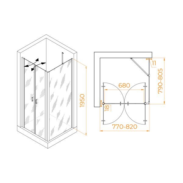Душевой уголок RGW PA-134B (PA-104B+Z-050-2B+O-204B) 060814488-14 80x80см чёрный купить