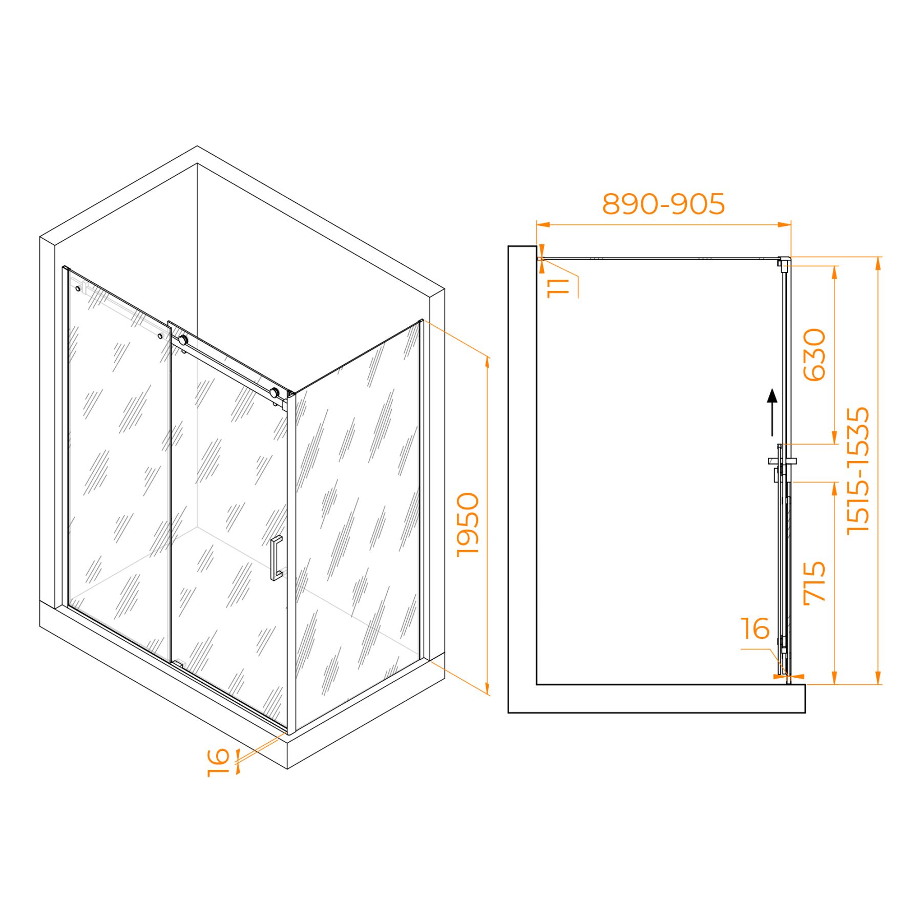 Душевой уголок RGW TO-44-1 (TO-14 + Z-060-2) 020744169-11 160x90см хром купить
