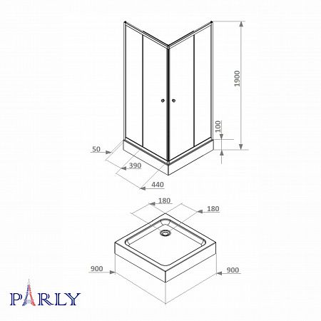 Душевой уголок с поддоном PARLY ZFQ911B (90х90х190)