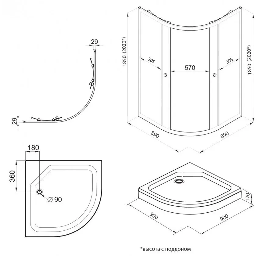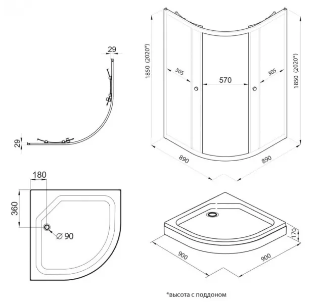 Высота с поддоном: 202 см