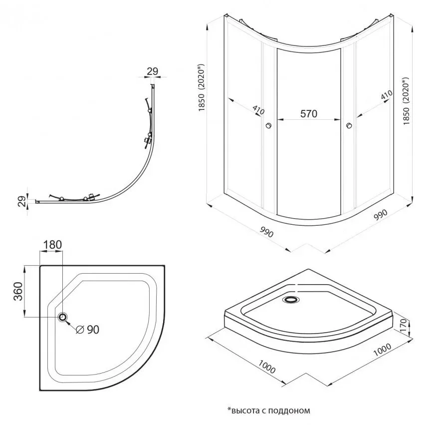 Высота с поддоном: 202 см