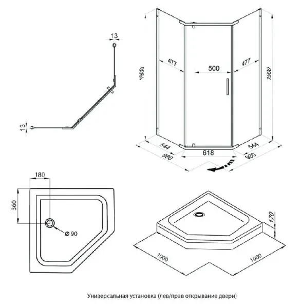 Душевой уголок Размер: 100 x 100 x 190 см Высота с поддоном: 207 см Конструкция двер... Подробнее