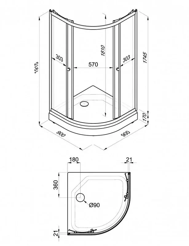 Душевой уголок Размер: 90 x 90 x 174.5 см Высота с поддоном: 191.5 см Конструкция дв... Подробнее