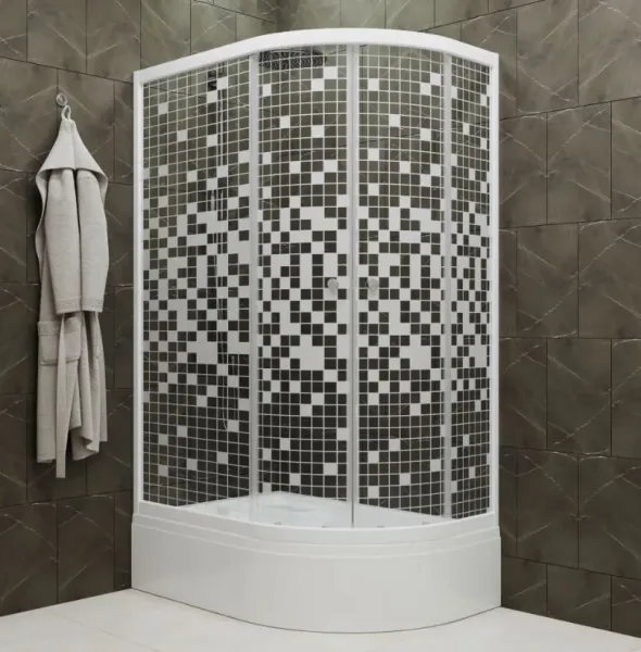 Душевой уголок Triton Коралл В Размеры: 120х80х205.5 Профиль: Белый Переднее стекло: Мозай... Подробнее