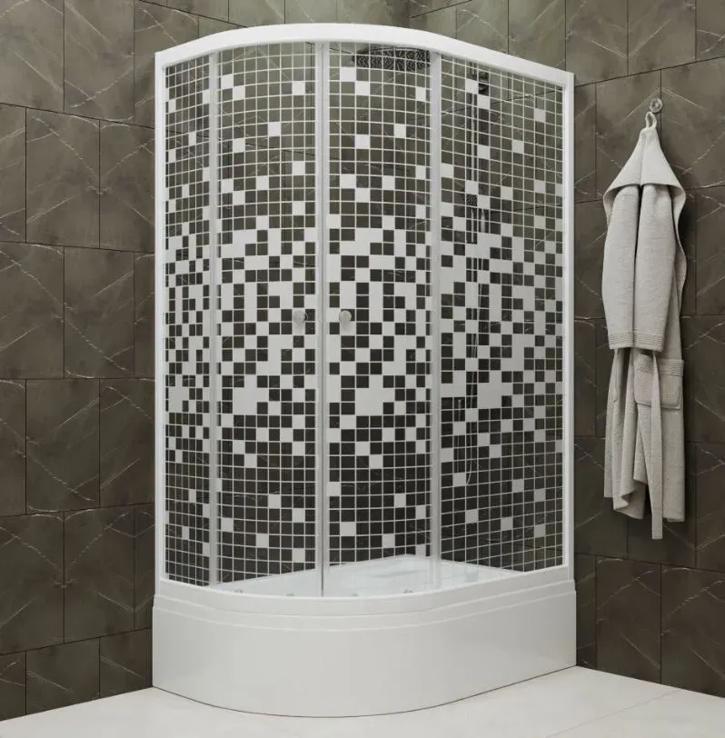 Душевой уголок Triton Коралл Щ0000038529 правый 120x80 см профиль белый стекло мозаика купить