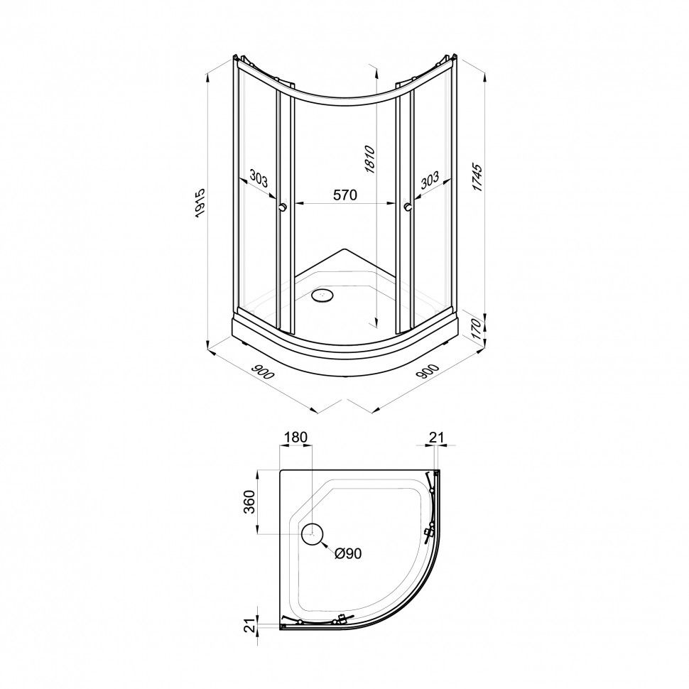 Размер: 90 x 90 x 174.5 см