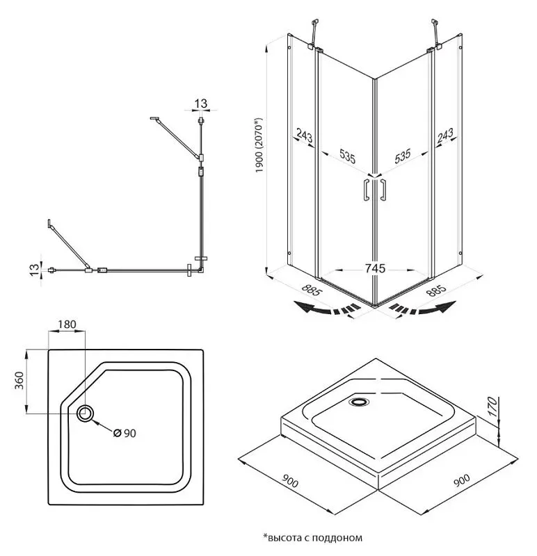 Душевой уголок Triton Тау Щ0000054038 90x90 см профиль чёрный стекло прозрачное купить