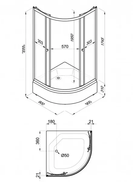 Высота с поддоном: 205.5 см