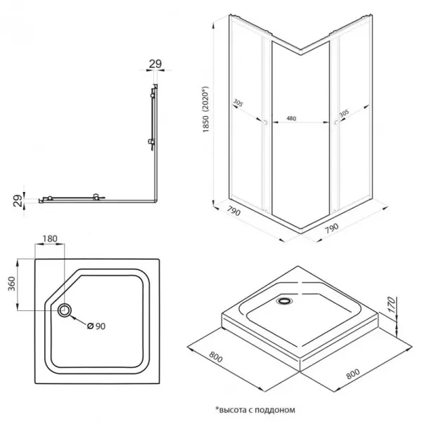 Душевой уголок Triton Вента Щ0000049620 80x80 см профиль хром стекло прозрачное купить