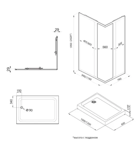 Душевой уголок Triton Вента-Хром. Без поддона.