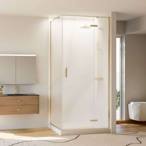 Душевой уголок Veconi Rovigo RV-073RG/R, 900х800х1950, золото брашинг, стекло дождь купить