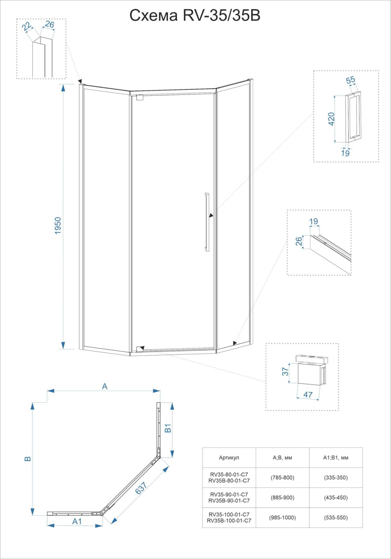 Душевой уголок Veconi Rovigo RV-35, 800х800х1950, хром, прозрачное стекло купить