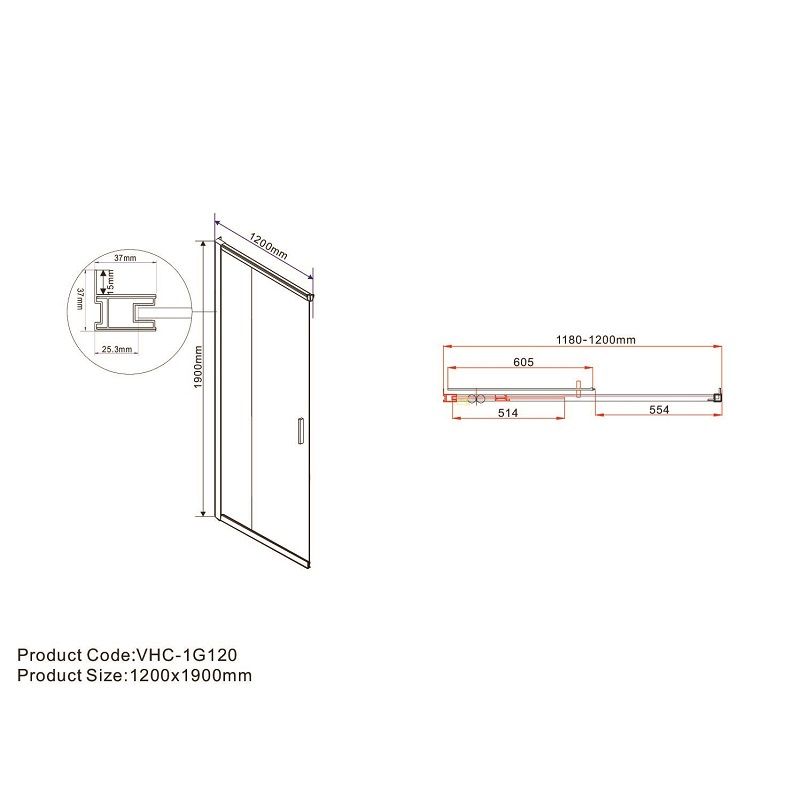 Дверь для душевого уголка Garda VHC-1G120CL, хром, стекло прозрачное, VHC-1G120CL