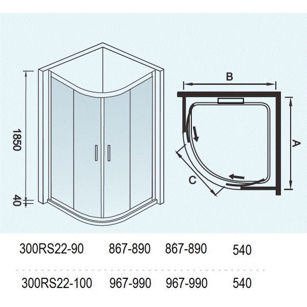 Душевой уголок WeltWasser СЕРИЯ WW300 Арт. 300RS22-90 Размер 900х900х1850