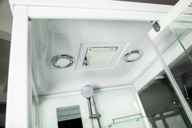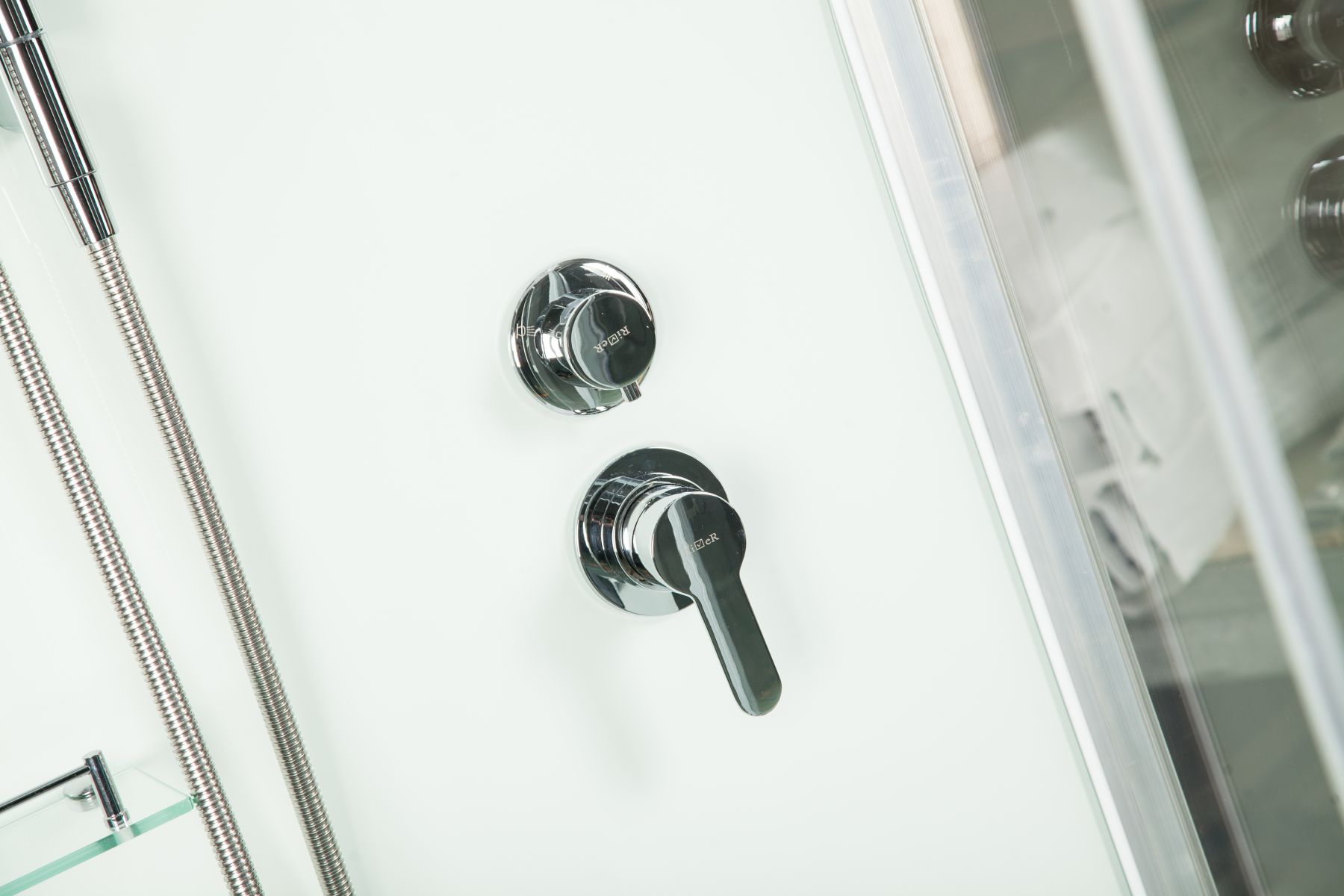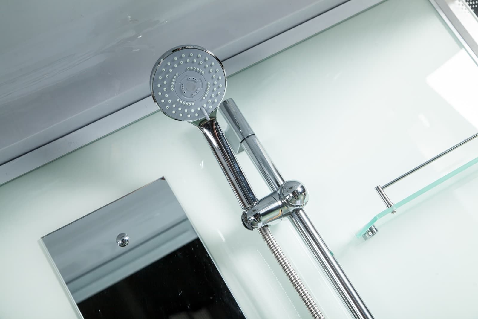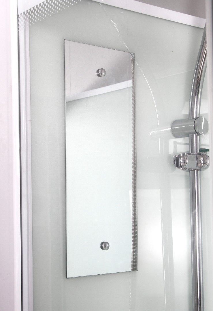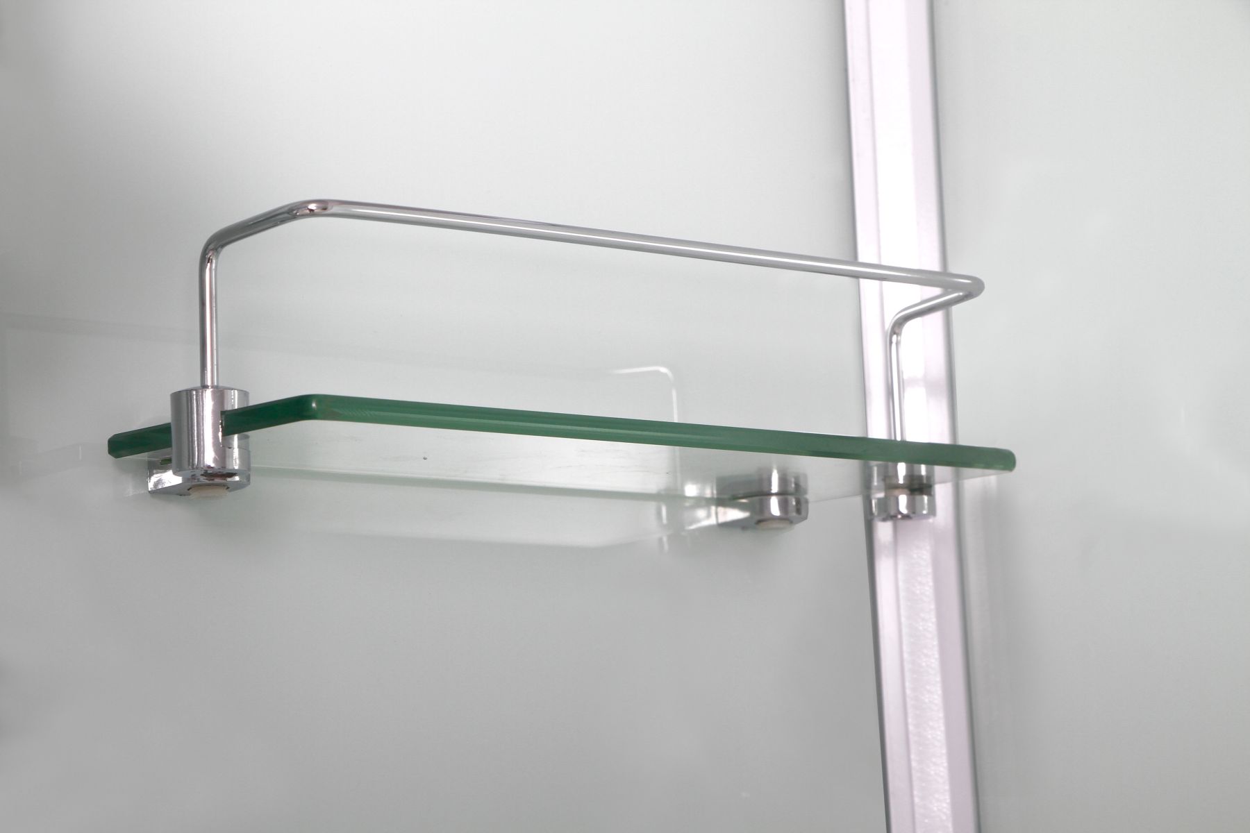 Стекло 6 мм. Задняя стенка - крашеное непрозрачное белое . Фронтальное стекло и боковые стекла прозрачные. Дверь стекло прозрачное.