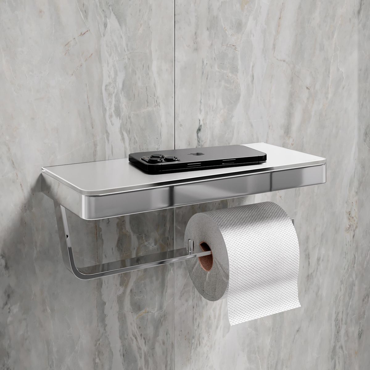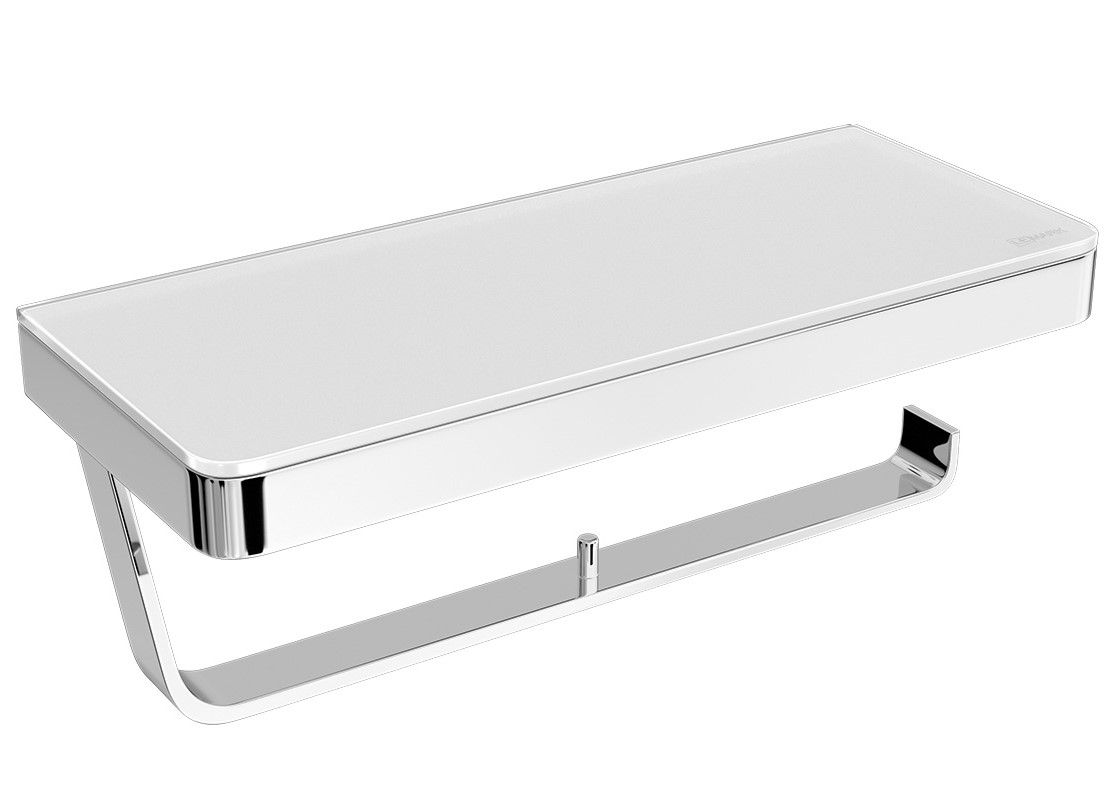 Двойной держатель для туалетной бумаги Lemark Glass Line 9721040 с полкой хром/белое стекло