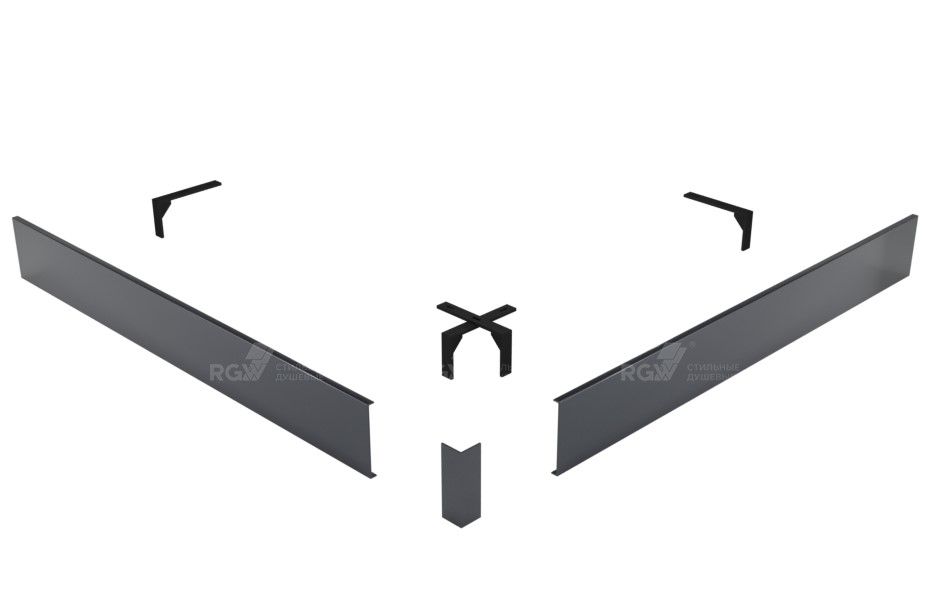 Комплектация: 2 экрана (фронтальный и боковой), соединительный уголок, крепление к ножкам на которые устанавливается поддон.
