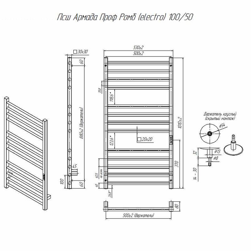 Электрический полотенцесушитель Altasan АрмадаПроф АрмадаПрофР10050ЧМ Черный муар 100х50