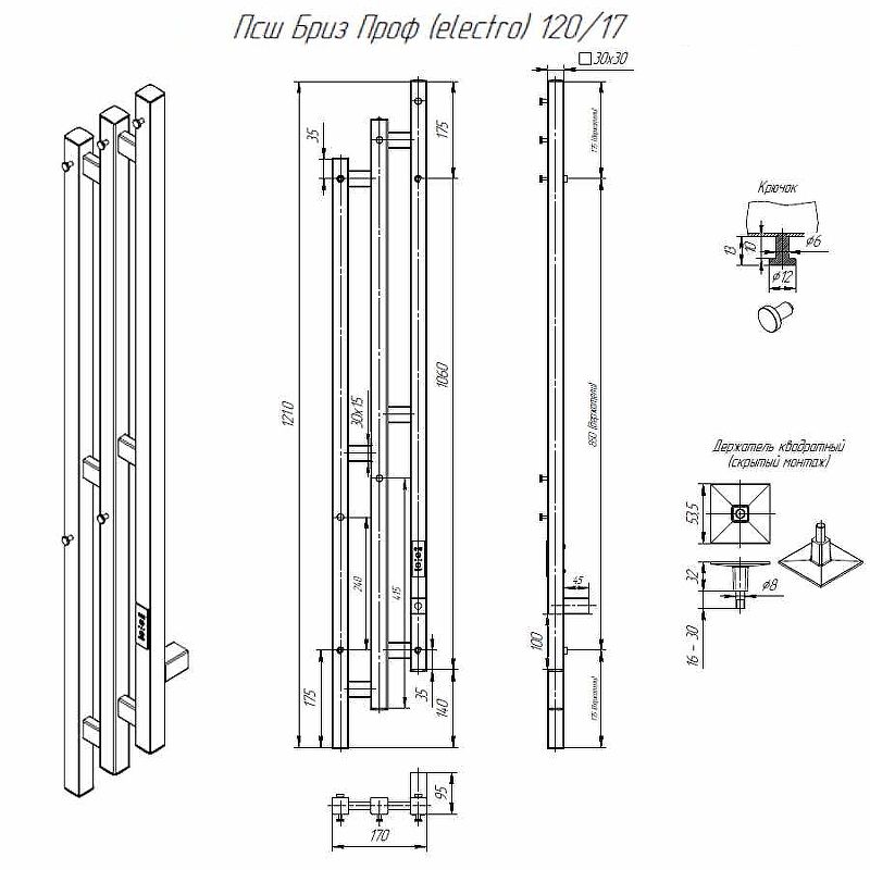 Электрический полотенцесушитель Altasan БризПроф 120х17 БризПроф12017БМ Белый матовыйДанный полотенцесушитель имеет два вида подключения: подключение стандартным кабелем с вилкой 220 Вольт и скрытое подключение к заранее подведенной на месте установки проводке. Во втором случае необходимо обжать жилы проводки дополнительными клемниками (идут в комплекте) и подсоединить их к жилам полотенцесушителя, согласно цветовой разметки.