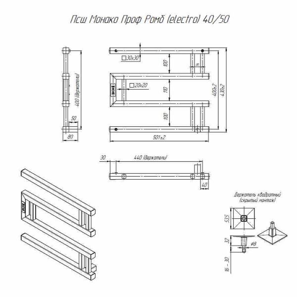 Электрический полотенцесушитель Altasan МонакоПроф МонакоПроф4050ЧМ Черный муар 40х50
