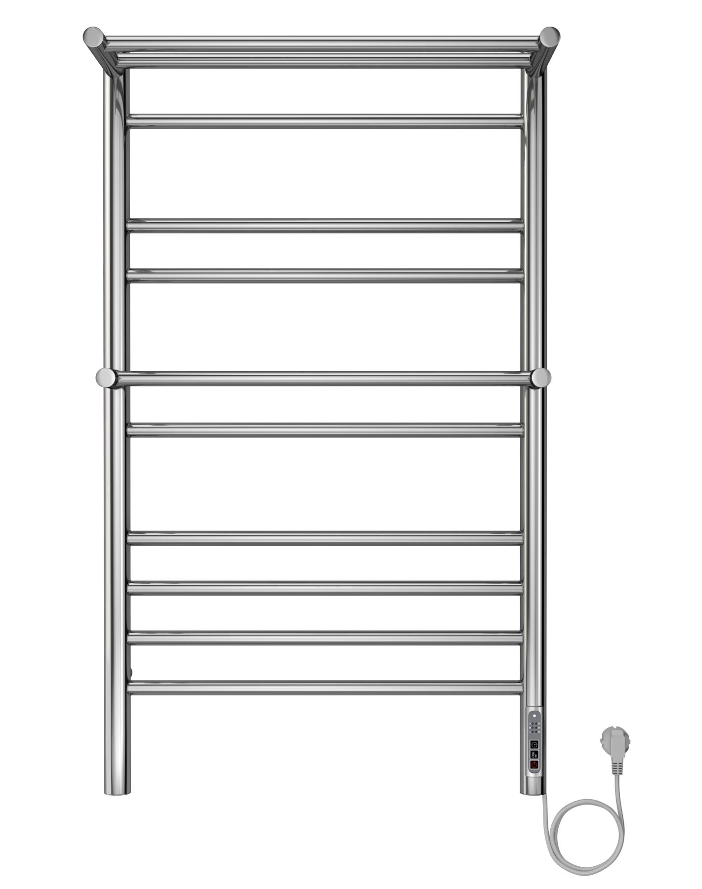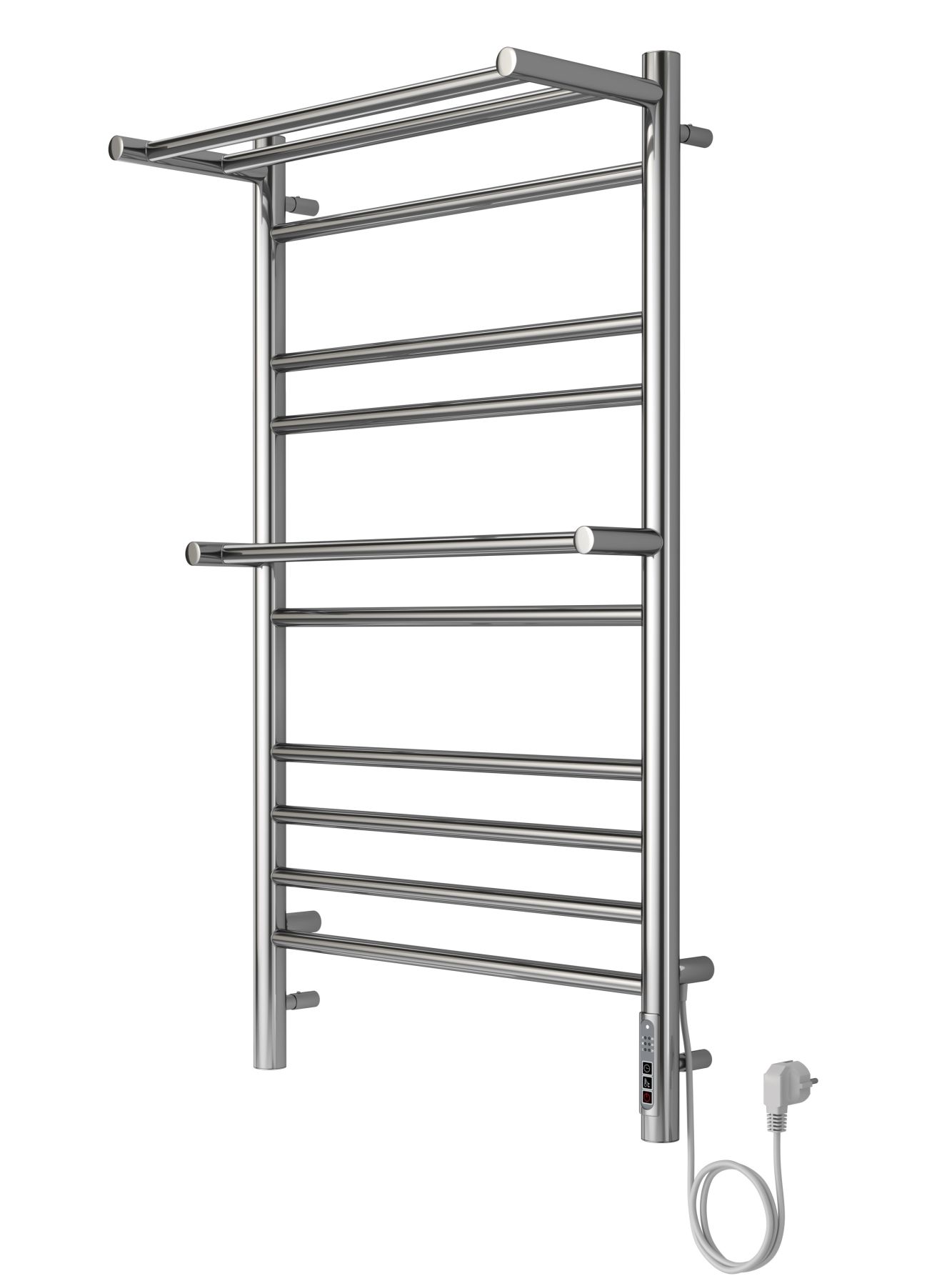 Полотенцесушитель электрический Aquatek (Акватек) Альфа П10 500х900 мм, с полкой, подключение скрытое к сети электропитания / электропровод с вилкой, с терморегулятором и таймером quick touch, нержавеющая сталь AISI 201, гарантия 5 летХарактеристики:32х18,ВСТРОЕННЫЙ ДИММЕРКомплектация:полотенцесушитель;