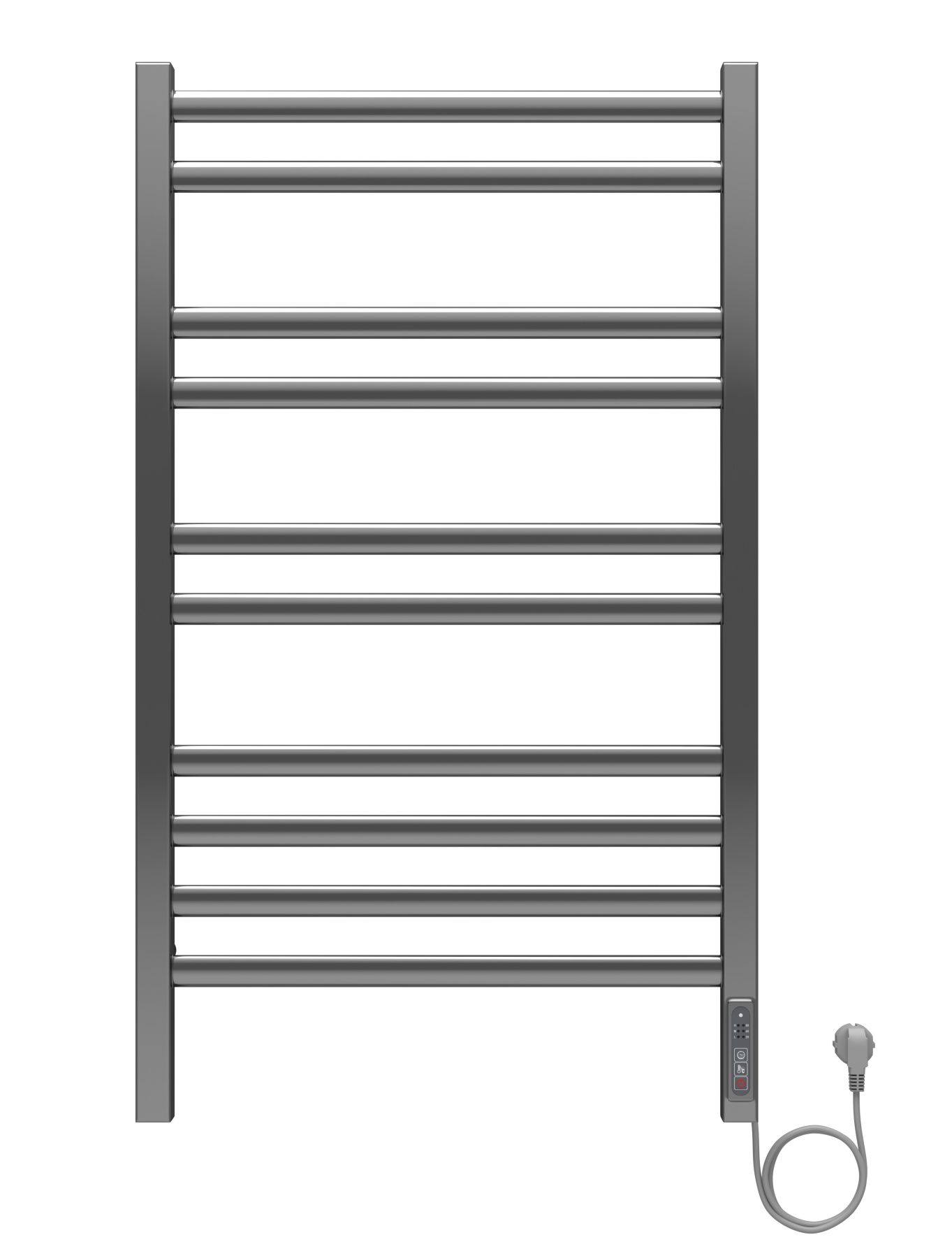 Полотенцесушитель электрический Aquatek (Акватек) Поларис П10 500х900 мм, подключение скрытое к сети электропитания / электропровод с вилкой, с терморегулятором и таймером quick touch, нержавеющая сталь AISI 201, гарантия 5 летХарактеристики:Стойка квадрат 30х30,ребра овал 29, ВСТРОЕННЫЙ ДИММЕРКомплектация:полотенцесушитель;