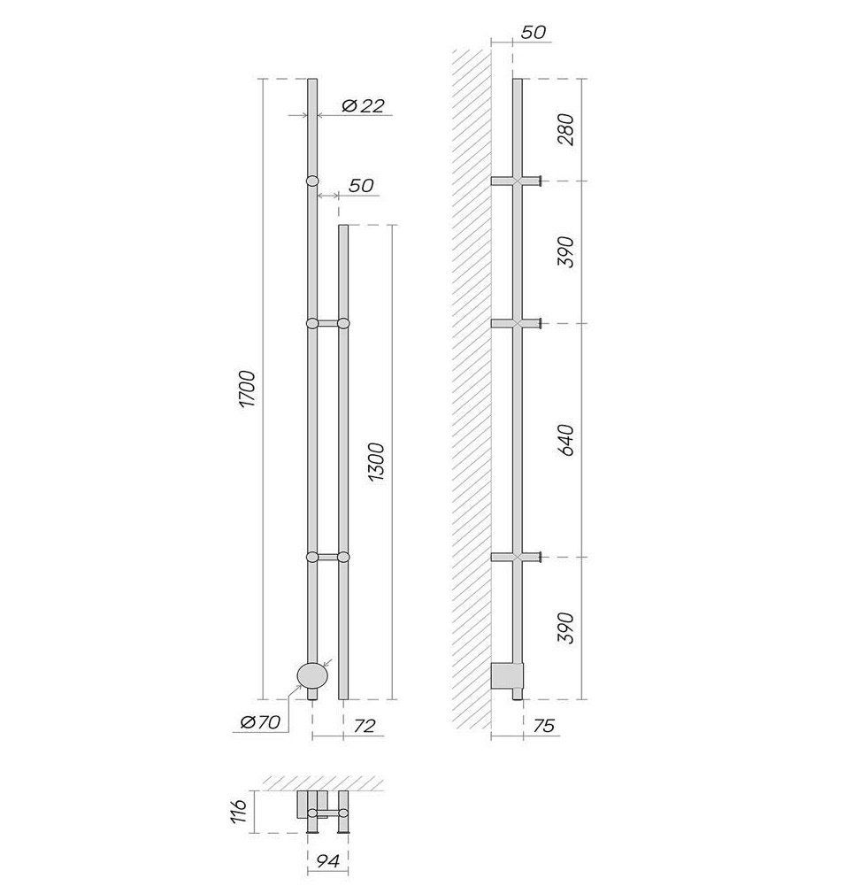 Простота, элегантность и функциональность — вот ключевые характеристики электрического вертикального полотенцесушителя. Его конструкция основана на греющем кабеле, а скрытое подключение уже входит в комплект. Полотенцесушитель органично впишется в любой интерьер, будь то миниатюрная ванная комната или просторное помещение. Он отличается высокой энергоэффективностью, так как его расход электроэнергии сравним с обычной лампочкой. Вы можете заказать этот стильный аксессуар в любом цвете по шкале RAL.