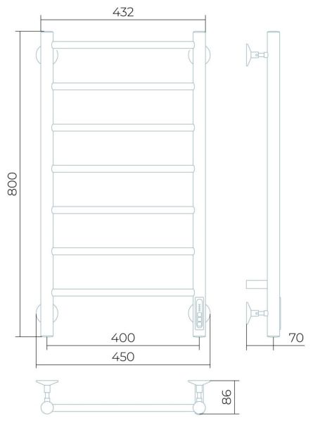 Заглушки на концах стоек, тип диммера - кнопочный (Quick Touch), крепления к стене.