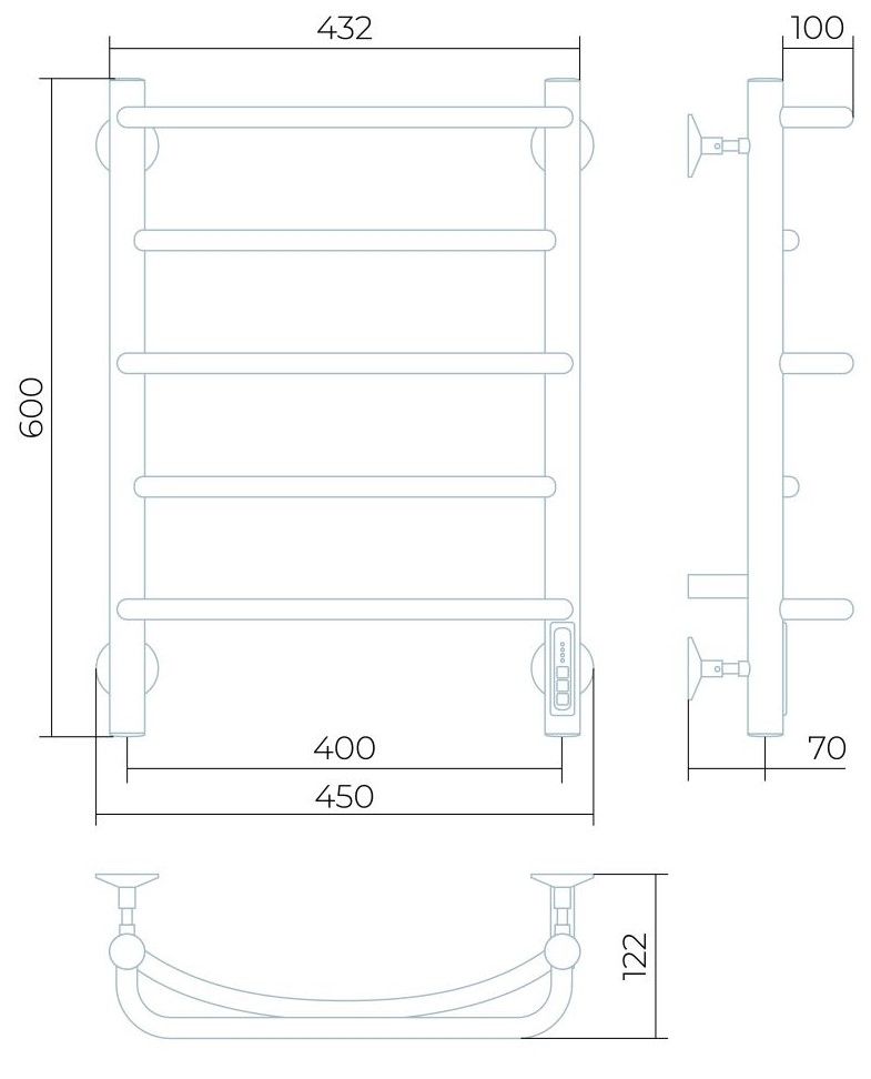 Заглушки на концах стоек, тип диммера - кнопочный (Quick Touch), крепления к стене.