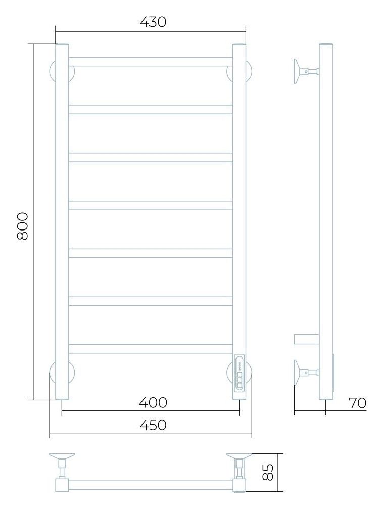 Заглушки на концах стоек, тип диммера - кнопочный (Quick Touch), крепления к стене.