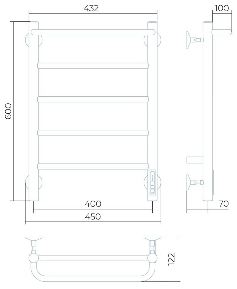 Заглушки на концах стоек, тип диммера - кнопочный (Quick Touch), крепления к стене.