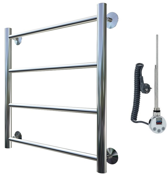 Внимание! Для скрытого монтажа электропроводки необходимо приобрести комплект скрытого подключения.Полотенцесушитель электрический комплектуется ТЭНом с терморегулятором и таймером.Изделие производится из нержавеющей стали AISI 201. Вертикальные трубы d -32 мм., для горизонтальных вставок используется труба d — 18 мм.Нагревательным элементом в полотенцесушителе является ТЭН. Полотенцесушитель заполнен бытовым антифризомЭкономичность: ТЭН нагревает антифриз до нужной температуры и выключается, далее при остывании полотенцесушителя он включается опять. Таким образом он работает не постоянно и получается, что ТЭН потребляет электричество не 300 Вт, а порядка 100 — 150 ВтМощность электрического прибора порядка 100 Вт при стоимости 1 Вт — 5 руб несложно посчитать: 100Вт х 24 = 2,4 кВт в сутки. Стоимость эксплуатации изделия за сутки 2,4 кВт х 5 руб. = 12 руб. При максимальной температуре расход электричества за 30 дней составит порядка 360 руб. При условии если сушка работает круглосуточно на максимальной температуре.Удобство монтажа: Полотенцесушитель крепится к стене на четыре держателя. Изначально ТЭН не установлен в полотенцесушитель для безопасной транспортировки, его можно установить, как справа, так и слева предварительно перевернув полотенцесушитель вверх ногами и выкрутив заглушку с нужной стороны на место в которое установится ТЭН.Примечание. Внимательно изучите инструкцию по установке ТЭНа!Скрытое подключение: Для скрытого монтажа электропроводки необходимо приобрести комплект скрытого подключения.Подключение в розетку: В комплекте с ТЭНом имеется шнур с вилкой, который будет необходим при подключении к розетке.
