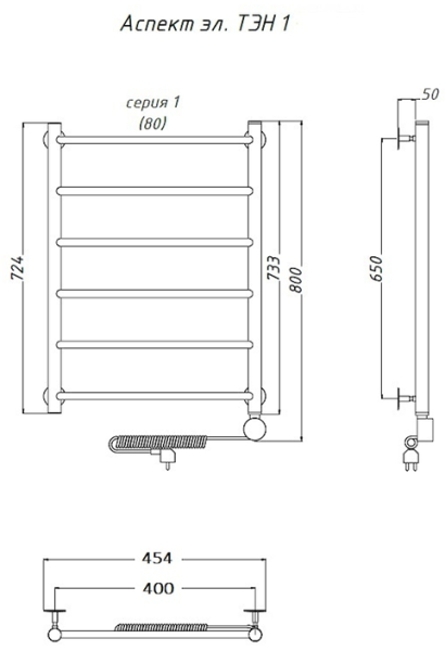 Электрический полотенцесушитель Тругор Аспект 1 80x40см хром Аспект1/элТЭН8040