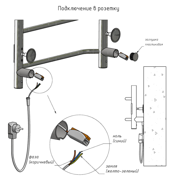 ПЭК — Полотенцесушитель электрический кабельный. Изделие производится из нержавеющей стали AISI 201. Вертикальные трубы d -32 мм., для горизонтальных вставок используется труба d — 18 мм.Нагревательным элементом в полотенцесушителе является греющий кабель — аналог «теплого пола», кабель заправляется внутрь каждой трубы и передает тепло на поверхность изделия. Во включенном состоянии постоянно поддерживается температура 40-600.Встроенная функция регулировки температуры: 40 / 50 / 60 градусов Экономичность: Полотенцесушитель снабжен панелью управления. Кнопка включения/выключения и таймер на 2 / 4 / 6 часов , который позволяет включать изделие на ограниченное время. Эта функция дает возможность экономить электричество.Мощность электрического прибора порядка 60W при стоимости 1 кВт — 5 руб несложно посчитать: 60W х 24 = 1,5 кВт в сутки. Стоимость эксплуатации изделия за сутки 1,5 кВт х 5 руб. = 7,5 руб. Максимальный расход электричества за месяц примерно 225 руб. При условии если сушка работает круглосуточно.Удобство монтажа: Полотенцесушитель крепится к стене на четыре держателя. Универсальное исполнение изделия позволяет подключить его, как справа, так и слева.Скрытое подключение: Благодаря приваренным в нижней части вертикальных труб двум распаячным коробкам, в которых соединяется электропроводка, возможно скрытое подключение к электричеству слева и справа.Подключение в розетку: В комплекте также имеется шнур с вилкой, который будет необходим при подключении к розетке.Панель включения:РЕЖИМ №1 — работа в течение 2 часов с последующим отключением.РЕЖИМ №2 — работа в течение 4 часов с последующим отключением.РЕЖИМ №3 — работа в течение 6 часов с последующим отключением.