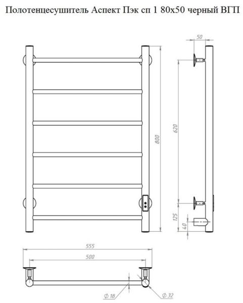 Электрический полотенцесушитель Тругор Аспект Пэк сп 1 80x50см чёрный АспектПэксп1/8050чернВГП