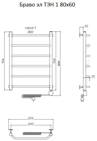 Электрический полотенцесушитель Тругор Браво 1 80x60см хром Браво1/элТЭН8060