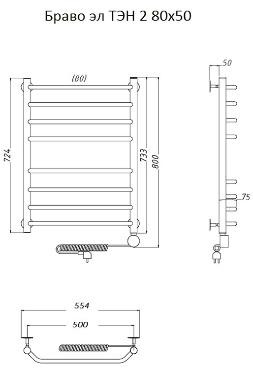 Электрический полотенцесушитель Тругор Браво 2 80x50см хром Браво2/элТЭН8050