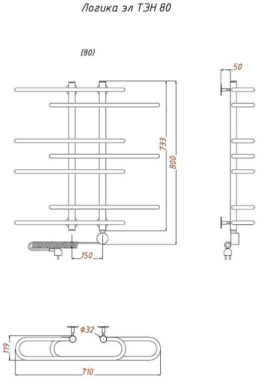 Внимание! Для скрытого монтажа электропроводки необходимо приобрести комплект скрытого подключения.Полотенцесушитель электрический комплектуется ТЭНом с терморегулятором и таймером.Изделие производится из нержавеющей стали AISI 201. Вертикальные трубы d -32 мм., для горизонтальных вставок используется труба d — 18 мм.Нагревательным элементом в полотенцесушителе является ТЭН. Полотенцесушитель заполнен бытовым антифризомЭкономичность: ТЭН нагревает антифриз до нужной температуры и выключается, далее при остывании полотенцесушителя он включается опять. Таким образом он работает не постоянно и получается, что ТЭН потребляет электричество не 300 Вт, а порядка 100 — 150 ВтМощность электрического прибора порядка 100 Вт при стоимости 1 Вт — 5 руб несложно посчитать: 100Вт х 24 = 2,4 кВт в сутки. Стоимость эксплуатации изделия за сутки 2,4 кВт х 5 руб. = 12 руб. При максимальной температуре расход электричества за 30 дней составит порядка 360 руб. При условии если сушка работает круглосуточно на максимальной температуре.Удобство монтажа: Полотенцесушитель крепится к стене на четыре держателя. Изначально ТЭН не установлен в полотенцесушитель для безопасной транспортировки, его можно установить, как справа, так и слева предварительно перевернув полотенцесушитель вверх ногами и выкрутив заглушку с нужной стороны на место в которое установится ТЭН.Примечание. Внимательно изучите инструкцию по установке ТЭНа!Скрытое подключение: Для скрытого монтажа электропроводки необходимо приобрести комплект скрытого подключения.Подключение в розетку: В комплекте с ТЭНом имеется шнур с вилкой, который будет необходим при подключении к розетке.