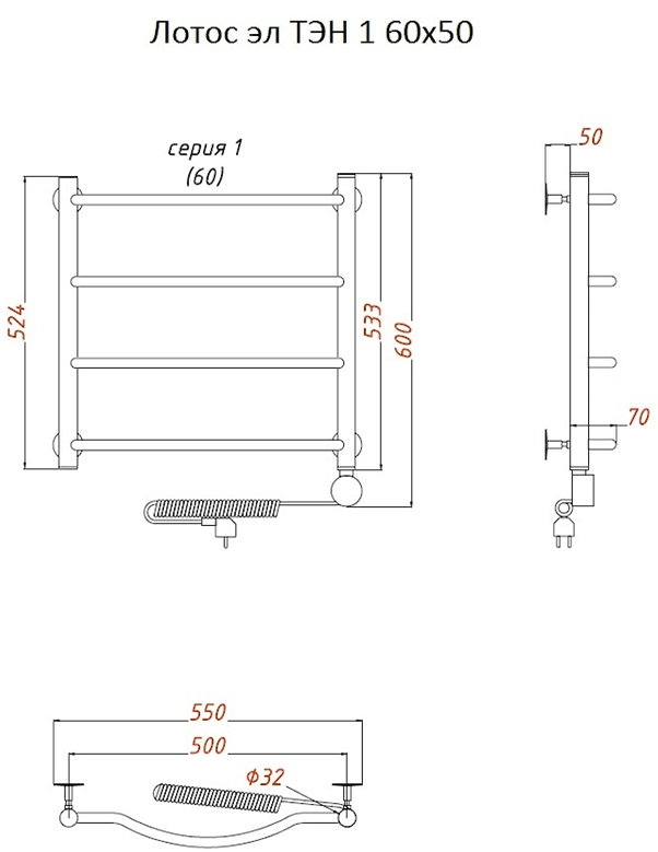 Электрический полотенцесушитель Тругор Лотос 1 60x50см хром Лотос1/элТЭН6050