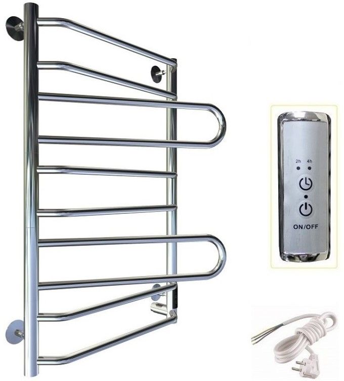 ПЭК — Полотенцесушитель электрический кабельный. Изделие производится из нержавеющей стали AISI 201. Вертикальные трубы d -32 мм., для горизонтальных вставок используется труба d — 18 мм.Нагревательным элементом в полотенцесушителе является греющий кабель — аналог «теплого пола», кабель заправляется внутрь каждой трубы и передает тепло на поверхность изделия. Во включенном состоянии постоянно поддерживается температура 50-600.Экономичность: Полотенцесушитель снабжен панелью управления. Кнопка включения/выключения и таймер на 2 часа и 4 часа, который позволяет включать изделие на ограниченное время. Эта функция дает возможность экономить электричество.Мощность электрического прибора порядка 60W при стоимости 1 кВт — 5 руб несложно посчитать: 60W х 24 = 1,5 кВт в сутки. Стоимость эксплуатации изделия за сутки 1,5 кВт х 5 руб. = 7,5 руб. Максимальный расход электричества за месяц примерно 225 руб. При условии если сушка работает круглосуточно.Удобство монтажа: Полотенцесушитель крепится к стене на четыре держателя. Универсальное исполнение изделия позволяет подключить его, как справа, так и слева.Скрытое подключение: Благодаря приваренным в нижней части вертикальных труб двум распаячным коробкам, в которых соединяется электропроводка, возможно скрытое подключение к электричеству слева и справа.Подключение в розетку: В комплекте также имеется шнур с вилкой, который будет необходим при подключении к розетке.Панель включения:РЕЖИМ №1 — постоянный нагревРЕЖИМ №2 — работа в течение 2 часов с последующим отключением.РЕЖИМ №3 — работа в течение 4 часов с последующим отключением.