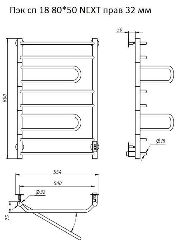 Электрический полотенцесушитель Тругор Next Пэк сп 80x50см правый хром Пэксп18/8050прав32 купить