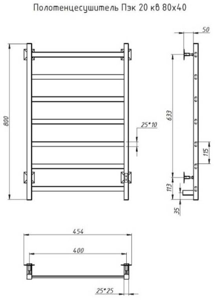 Электрический полотенцесушитель Тругор Пэк 20кв 80x40см хром Пэк20кв/8040