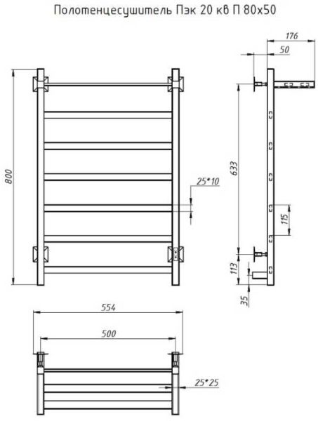 Электрический полотенцесушитель Тругор Пэк 20кв П с полкой 80x50см хром Пэк20квП/8050 купить