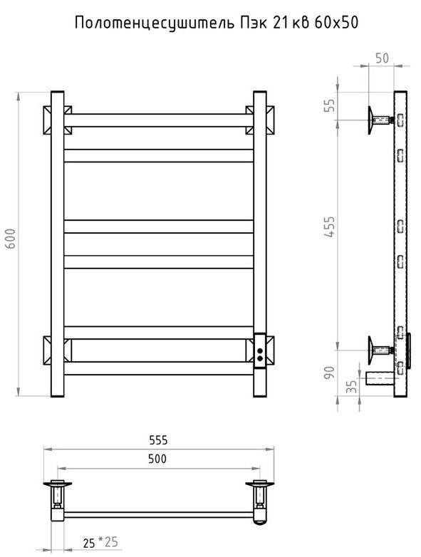 Электрический полотенцесушитель Тругор Пэк сп 21кв 60x50см чёрный Пэксп21кв/6050черныйВГП