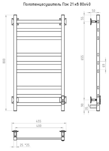 Электрический полотенцесушитель Тругор Пэк сп 21кв 80x40см чёрный Пэксп21кв/8040черныйВГП